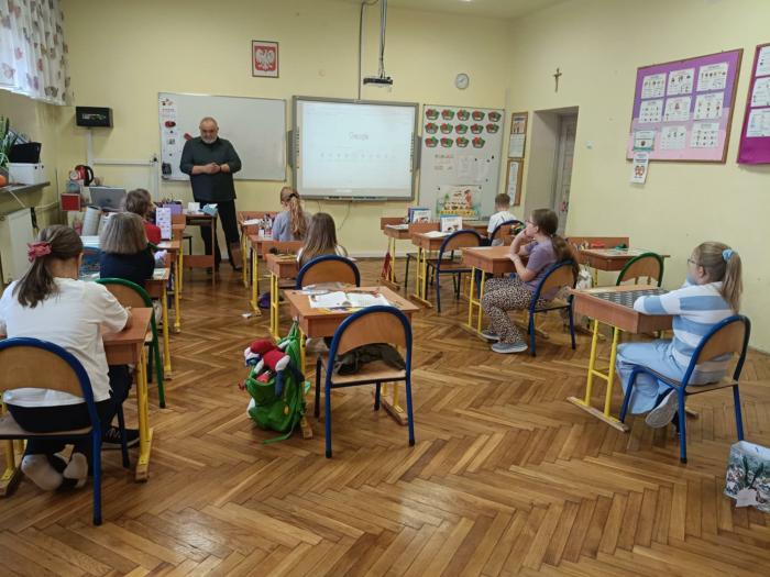 - Spotkałem się z grupą uczniów z klas I-III bardzo zaciekawioną pracą dziennikarzy i redaktorów - mówi J. Babicki. - Podczas spotkania odpowiadałem na wiele pytań. Z pewnością dzieci najlepiej zapamiętają, że dziennikarz, to osoba, która powinna pisać prawdę i swoją pracą służyć czytelnikom, słuchaczom, czy widzom, w zależności gdzie pracuje.