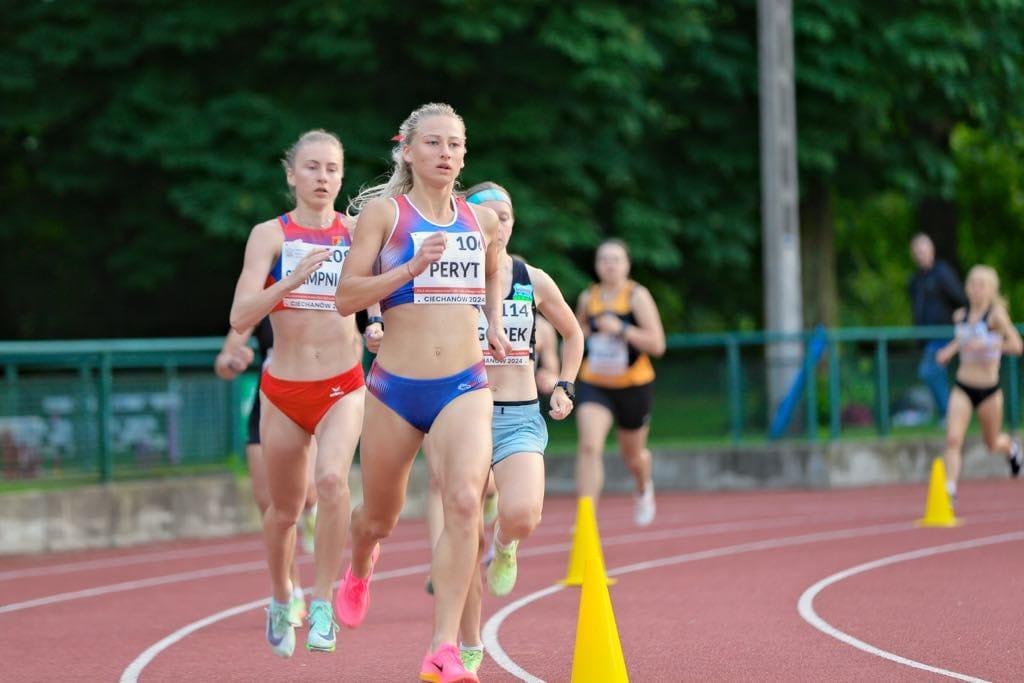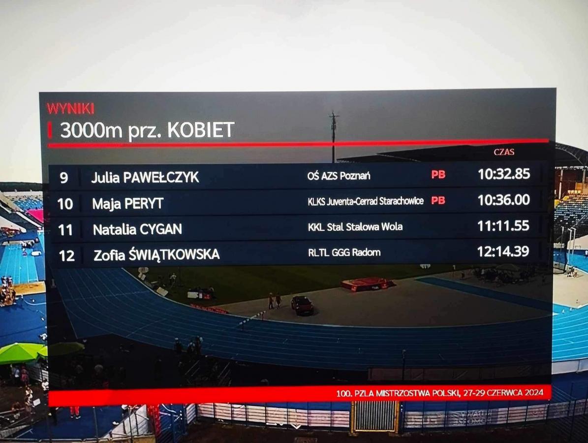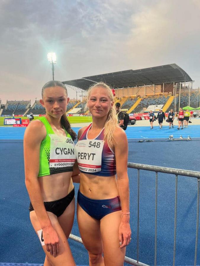 Galeria zdjęć z występu Mai Peryt na mistrzostwach Polski w lekkoatletyce, gdzie rywalizowała na biegu na 3 km z przeszkodami. Pomimo miejsca dziesiątego, sportowiec poprawił swój rekord życiowy osiągając czas 10:36. Zdjęcia przedstawiają emocje związane z zmaganiem się na stadionie w Bydgoszczy oraz pozytywne wspomnienia trenera Dawida Kubca po zakończeniu zawodów.