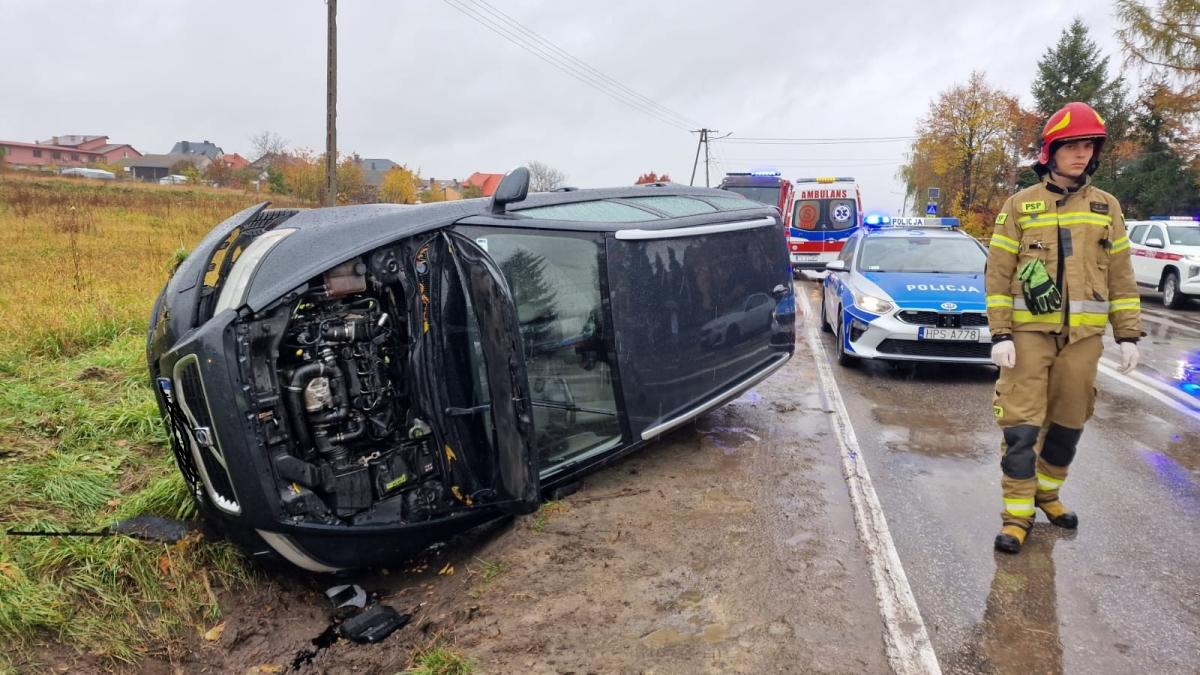 Galeria przedstawia zdjęcia z miejsca zderzenia dwóch samochodów w stronę Jadownik. Na pierwszym zdjęciu widać peugeota, którym kierowała 48-letnia kobieta. Za nią jechało volvo prowadzone przez 19-latka. Według policji, 19-latek nie dostosował prędkości do warunków i wpadł w poślizg, zderzając się z peugeotem. Na kolejnych zdjęciach widać akcję 3 zastępów straży pożarnej, które udzielały pomocy. 19-latek, choć sam wyszedł z auta, został przewieziony do szpitala dla dalszej obserwacji. Kierowcy byli trzeźwi - informują asp. Paweł Kusiak oraz kpt. Daniel Lipczyński z miejscowej policji i straży pożarnej.