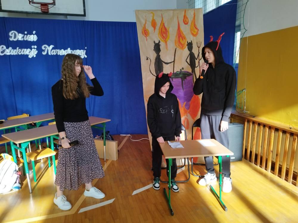Galeria zdjęć z okazji wyrażenia wdzięczności nauczycielom w humorystyczny sposób. Uczniowie przedstawili historię szkolnictwa od Adama i Ewy po współczesność. Pokazano lekcje szkolne oraz zabawne prezenty dla nauczycieli. Życzenia i upominki przekazane przez Szkolny Samorząd Uczniowski i Radę Rodziców. Inicjatorka akademii - Ewelina Hamera, a oprawę muzyczną zapewniła Justyna Śpiewak.